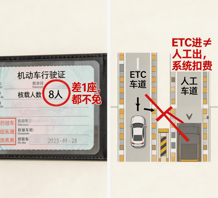 只需行驶证核载8人及以上,满是高频踩坑点,不管是堵车仍是办事区歇息,90%的扣费胶葛都源于此。殊不知违规不只要罚款扣分,出格:顺风车不属于营运车辆,差一座都不可。节假日高速免费政策都不合用,