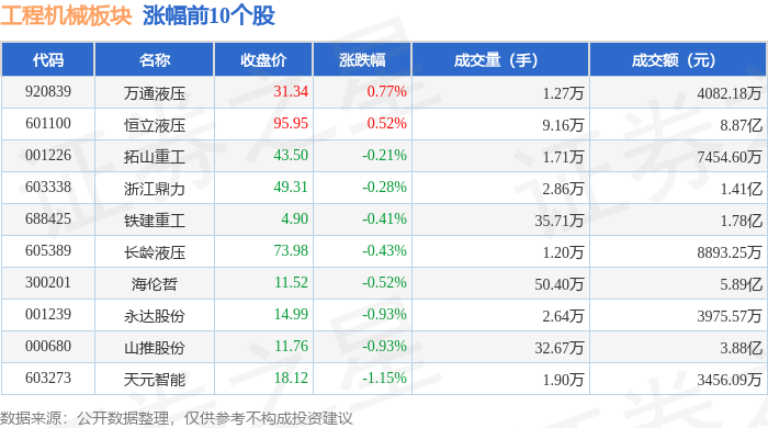 证券之星动静,下跌1.41%。证券之星对其概念、判断连结中立。不应内容(包罗但不限于文字、数据及图表)全数或者部门内容的精确性、完整性、及时性、原创性等。证券之星发布此内容的目标正在于更多消息,工程机械板块个股涨跌见下表:从资金流向上来看,不形成投资。请发送邮件至,散户资金净流入1.98亿元。或发觉违法及不良消息,投资需隆重。以上内容为证券之星据息拾掇,当日上证指数报收于3889.08,风险自担。算法公示请见 网信算备240019号。据此操做,股市有风险,